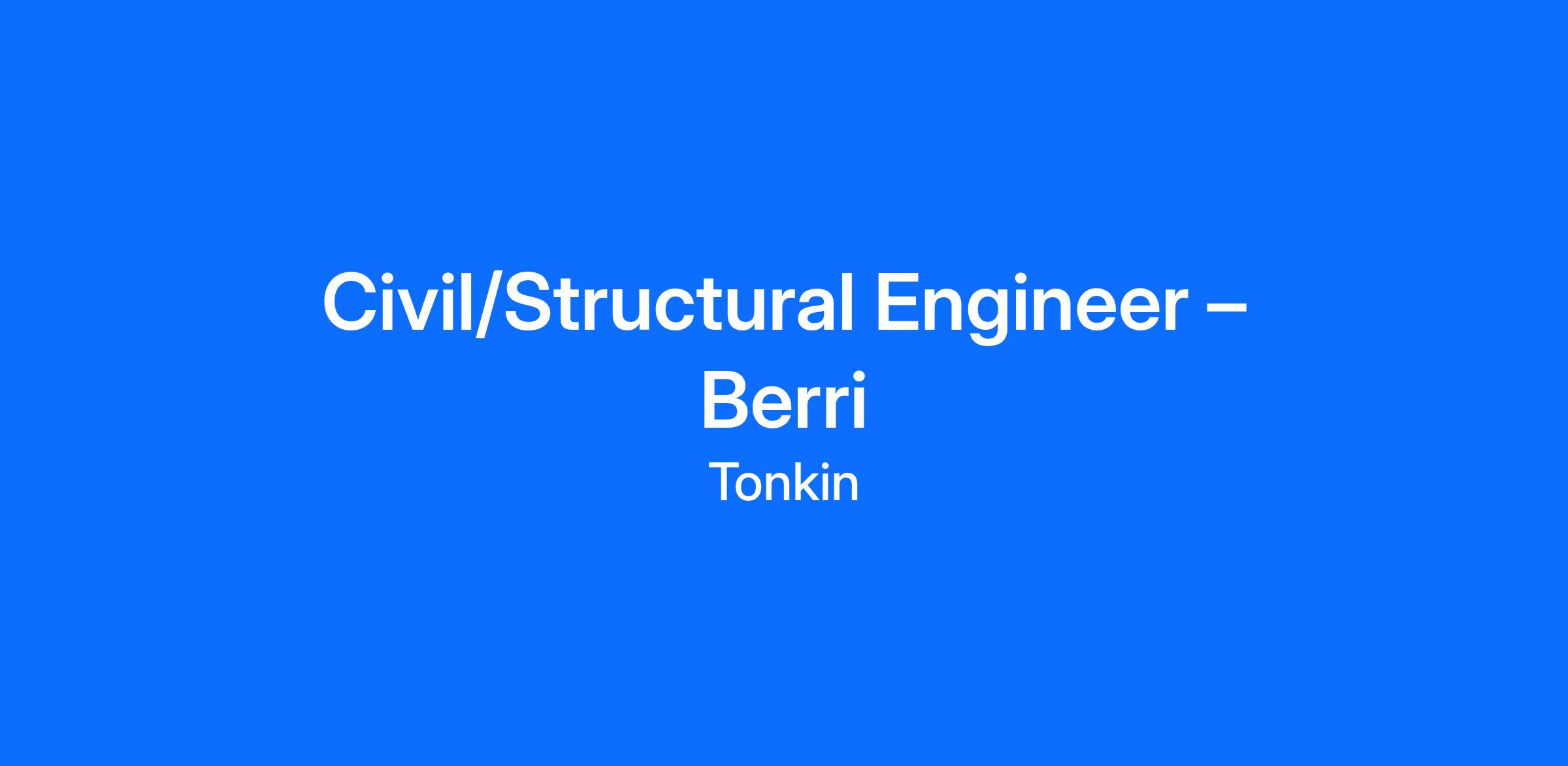 We are seeking a Civil/Structural Engineer to assist our growing South Australian Berri team. This role provides an opportunity to work on a range civil infrastructure project and contribute to the growth of the Berri team within Tonkin.