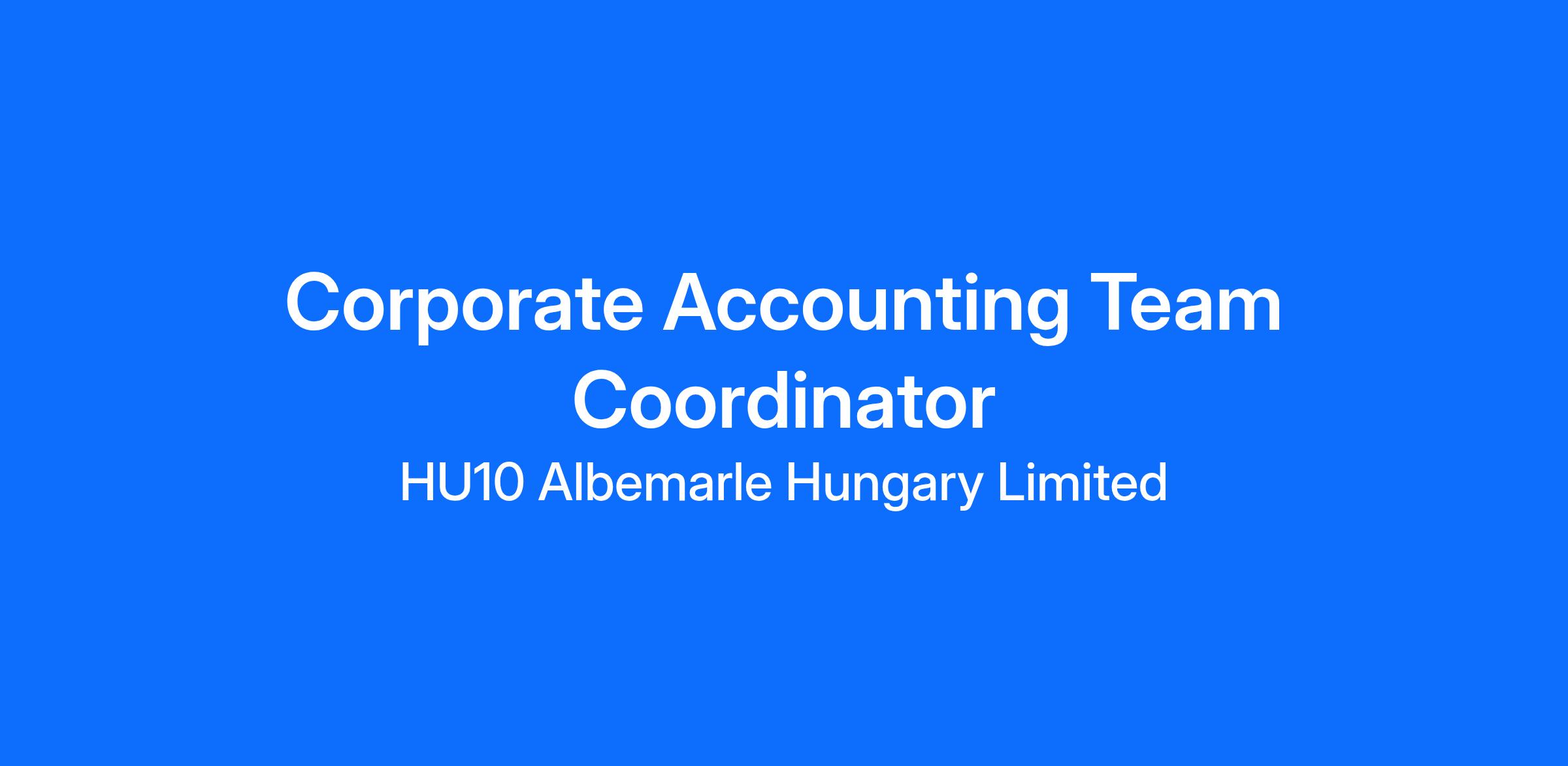 Albemarle is hiring for a Corporate Team Coordinator. This position is hybrid and located in Budapest.