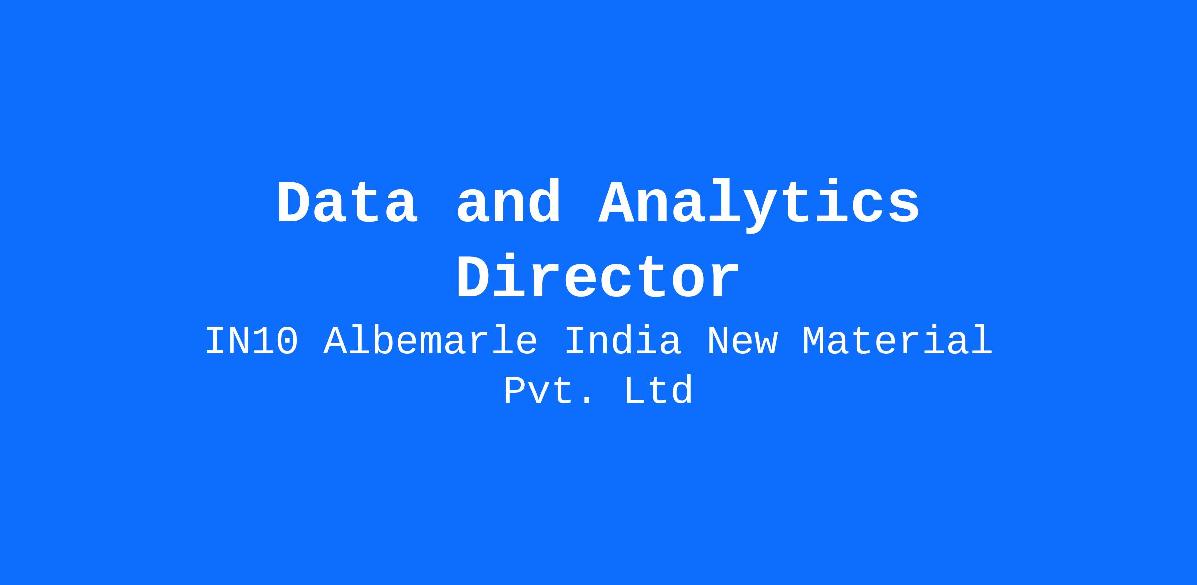 Job Summary: The Data and Analytics Director at Albemarle will lead the Data and Analytics department, overseeing the strategic direction, development, and implementation of data-driven solutions. This role requires a visionary leader with a strong background in data management, analytics, and team leadership. The Director will work closely with various departments to ensure data integrity, optimize data usage, and drive business insights.