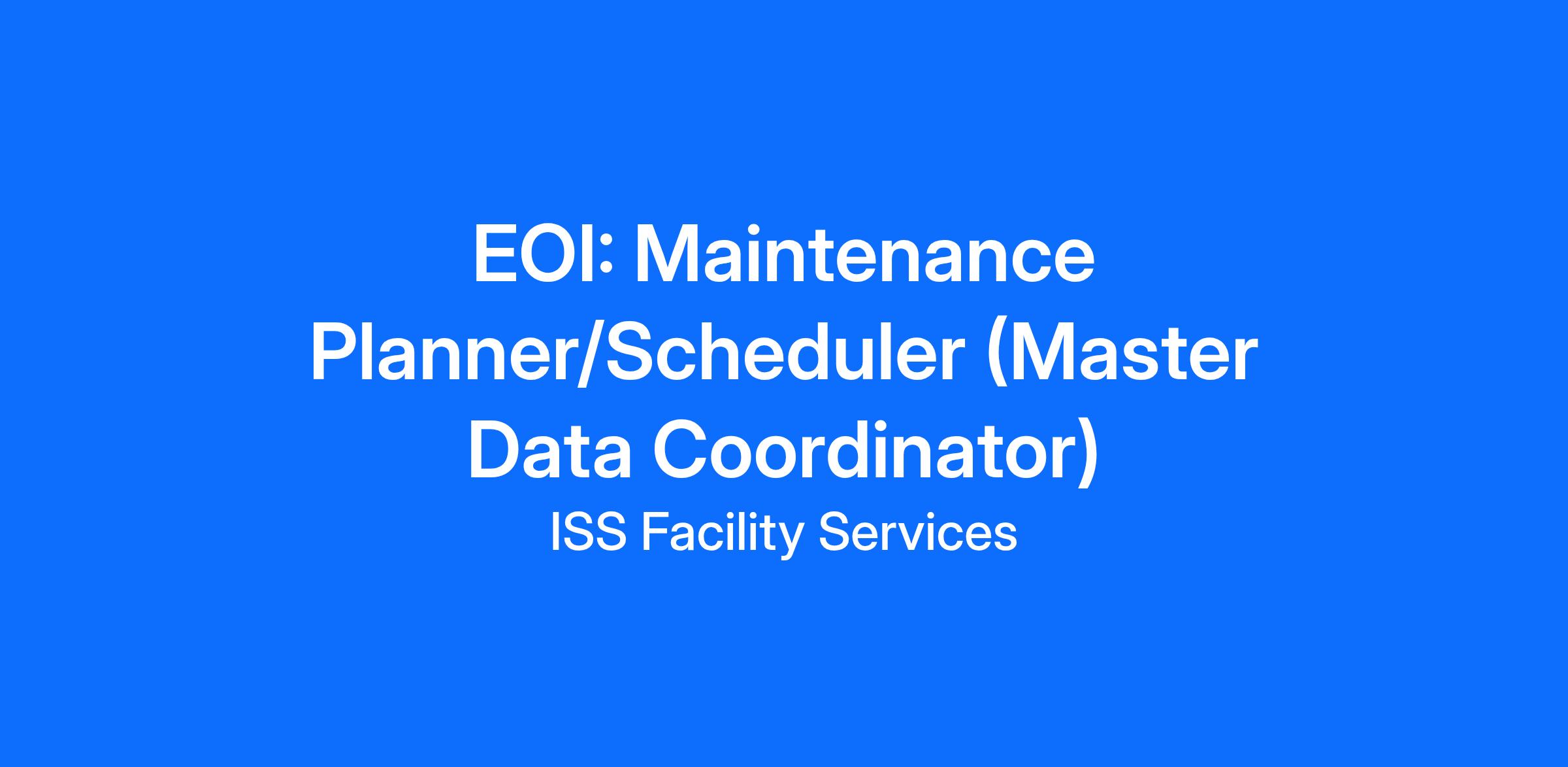 Maintenance Planner/Maintenance Scheduler/Master Data Coordinator