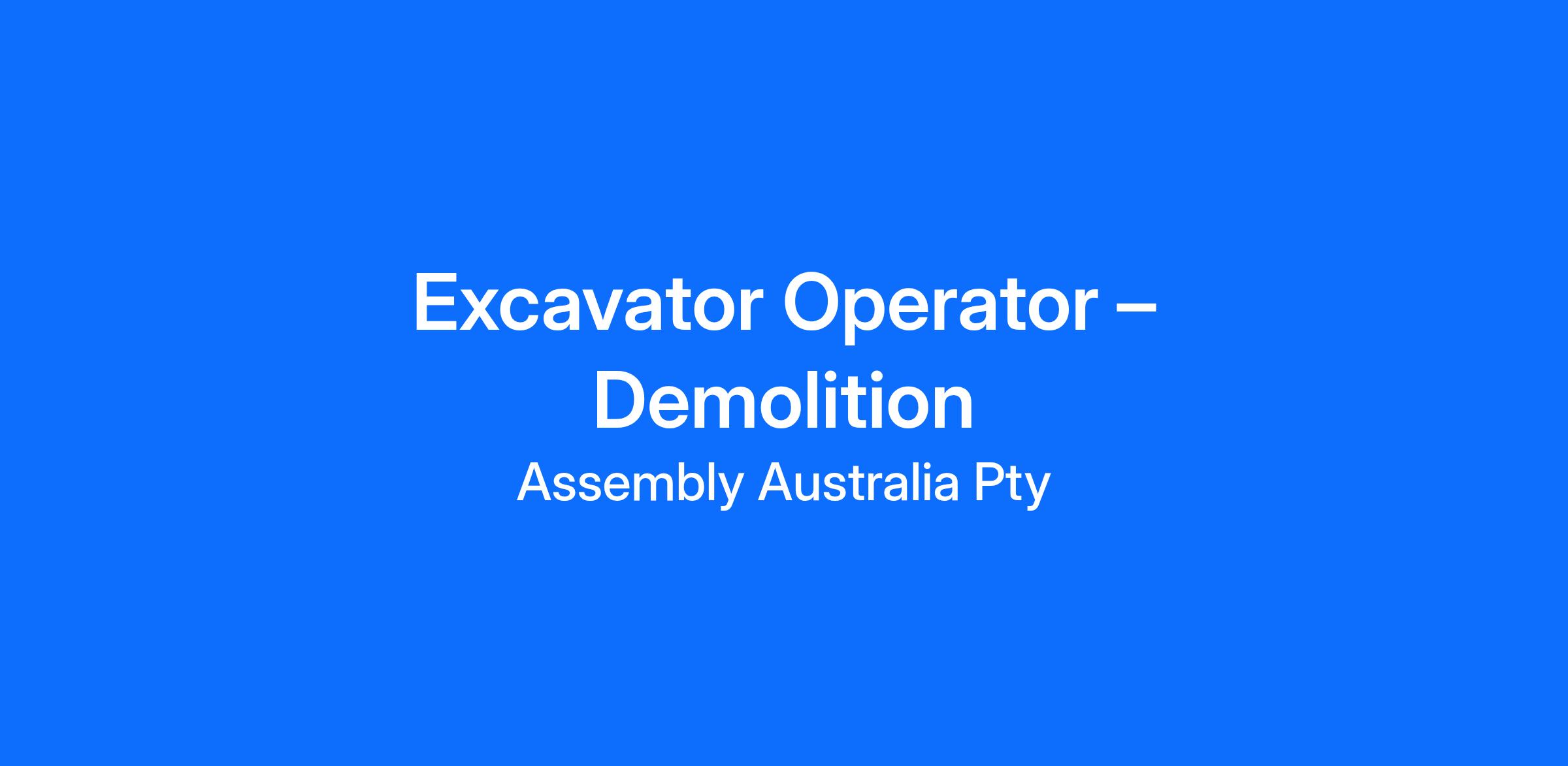 We have a great opportunity for an experienced Excavator Operator to join our team on demolition projects across Melbourne. This role is available for an immediate start and offers ongoing work in a dynamic environment.