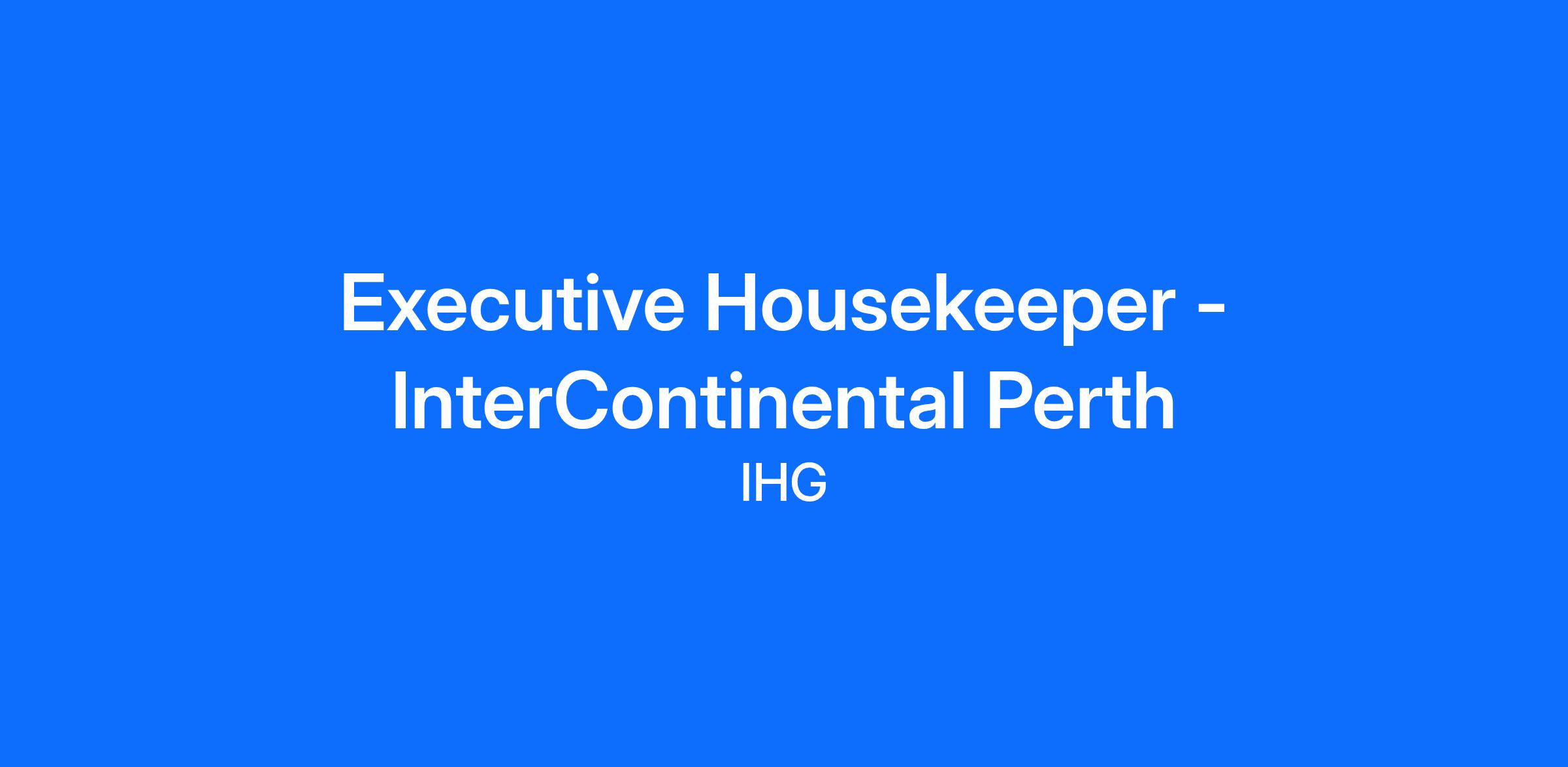 InterContinental Perth City Centre, is looking for an Executive Housekeeper to join our team. If you want to professionally grow within an excellent team, then this is the opportunity you've been waiting for!