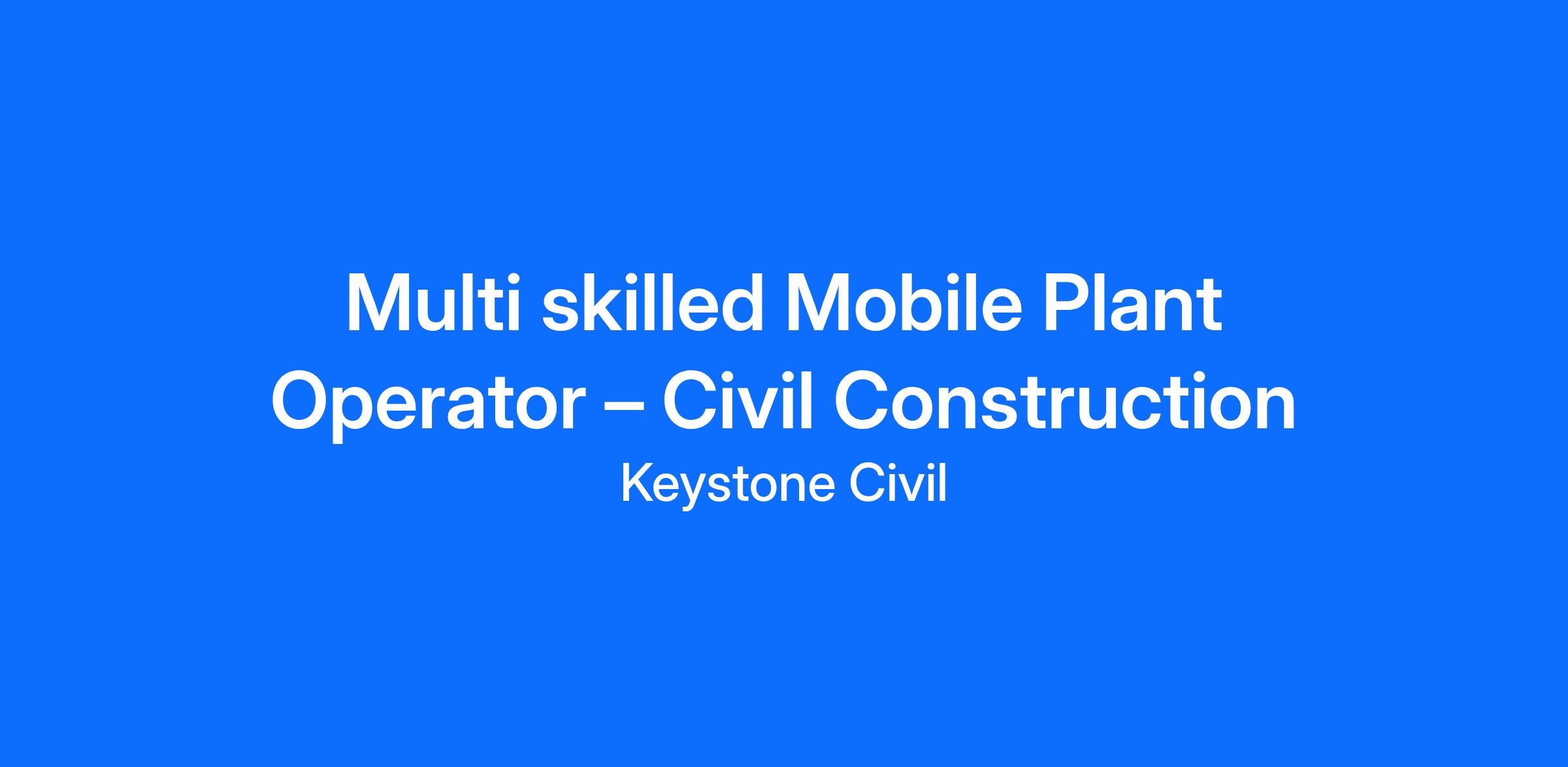 - Operate a variety of mobile plant and machinery to perform a wide range of tasks, based on your skills, strengths, and project requirements.