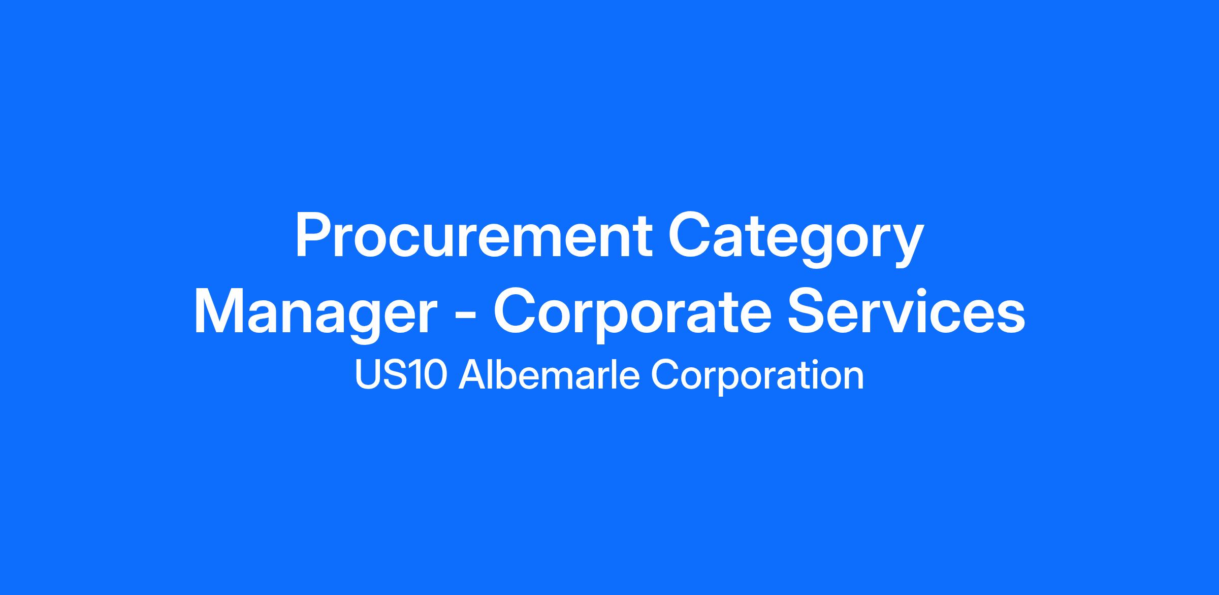 The Category Manager β Corporate Services position will work closely with Procurement leadership and internal functional teams to develop and expand complex category strategies at a global and regional level and to ensure the strategies are aligned to the overall business objectives. The role will be focused on cultivating relationships, understanding business goals, and helping to execute category strategies in order to streamline the purchasing process and maximize value delivery to the business. This role is accountable for supplier performance to ensure cost competitiveness, high service level commitment, value creation, partnership, responsible sourcing, sustainability, and innovation.