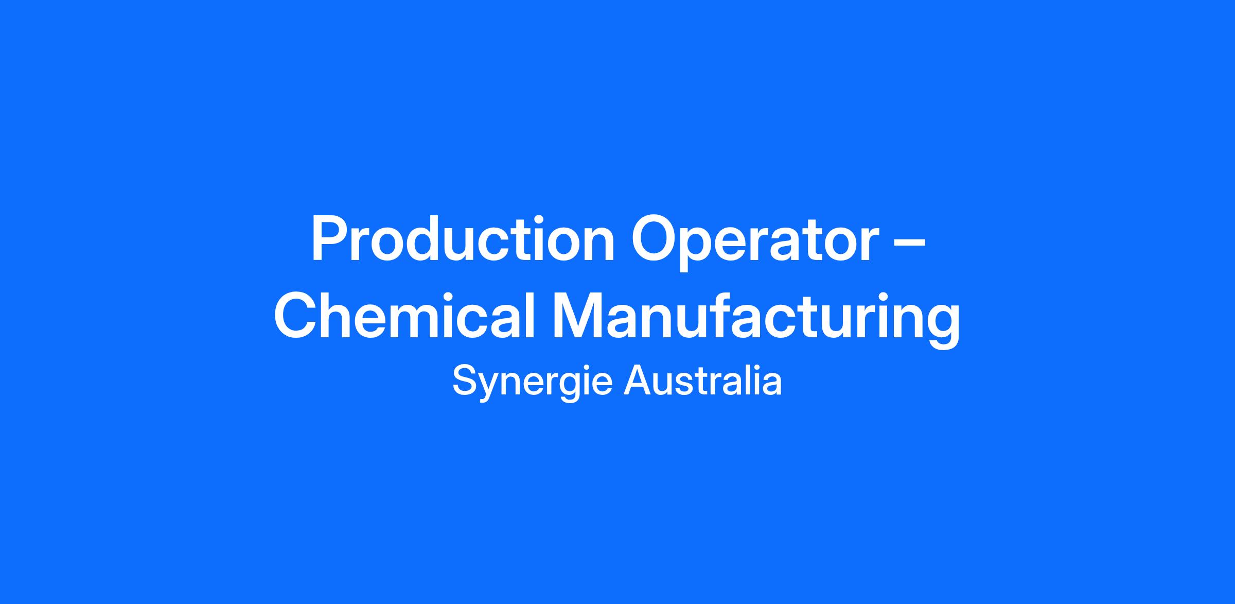 Production Operator – Chemical Manufacturing