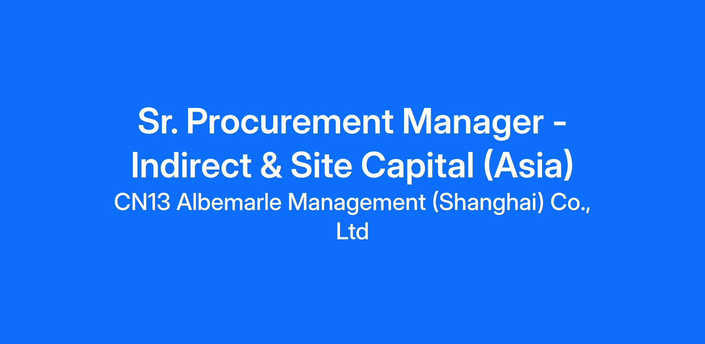 [Albemarle] is hiring for a [Sr. Procurement Manager - Indirect & Site Capital (Asia)]. This position is [hybrid and located in [Shanghai].