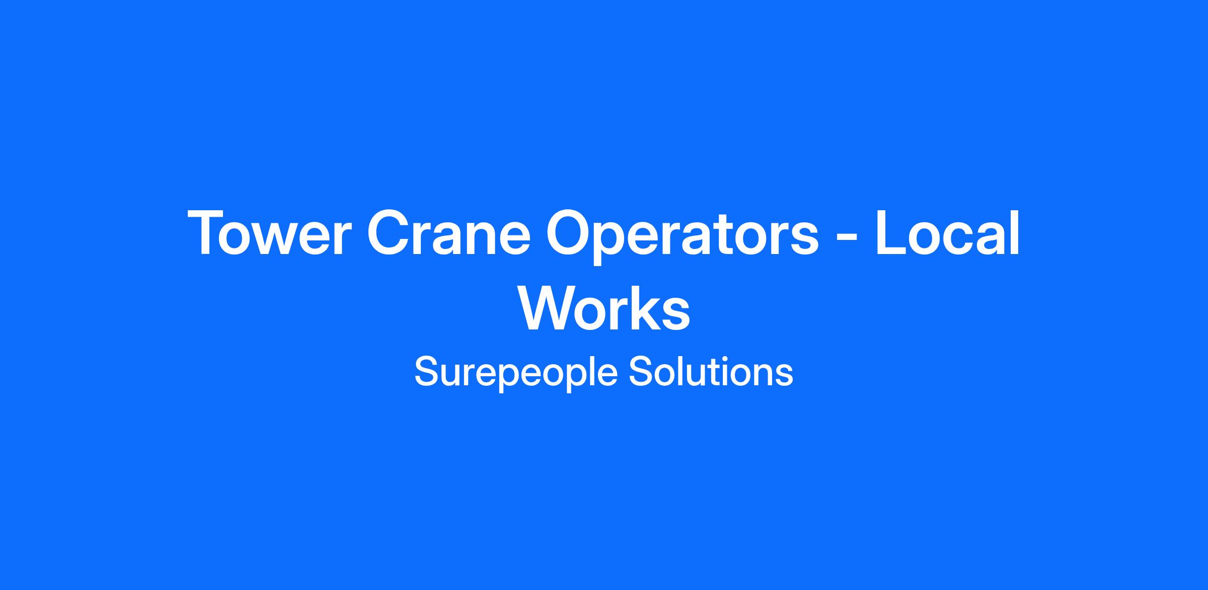 Sure People Solutions is seeking Tower Crane Operators for ongoing metro adhoc works in Perth CBD and surrounding areas.